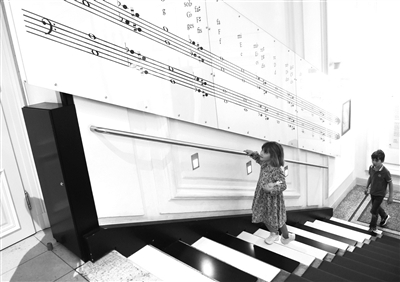 在“音乐之都”奥地利维也纳,有一座以声音和音乐为主题的博物馆“音乐之家”。“音乐之家”将现代技术与音乐相结合,通过游戏和互动体验让观众感受音乐的魅力。图为在奥地利维也纳“音乐之家”,观众在爬“音乐阶梯”。