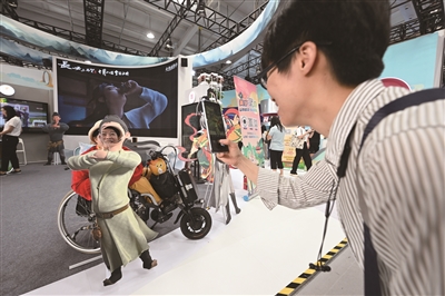 本届服贸会,石景山区以“京西福地 山水文化融城”为主题展示了该区文化产业发展和文旅融合的新成果。9月5日,记者在石景山展区看到,观众不仅能通过超大屏幕看到今夏火爆电影市场的《长安三万里》,领略盛唐的恢弘气象、诗人的群像风采,还能现场参与唐诗闯关、体验酷炫的VR游戏、拍照打卡等。