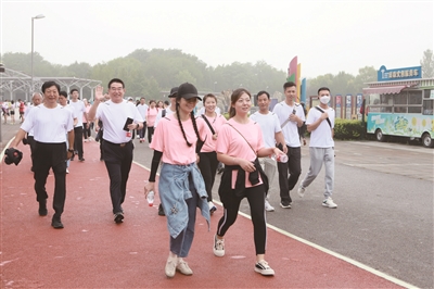 为丰富职工业余生活,倡导科学、文明、绿色健康的生活方式,近日,北京铜牛集团有限公司工会在奥林匹克森林公园举办第十届职工健步行活动,350余名职工参加。随着该集团公司党委书记、董事长贾晓彬鸣哨宣布活动开始后,着装整齐的职工精神抖擞迈着矫捷的步伐享受着健康运动带来的快乐。本报记者 周美玉 摄影报道