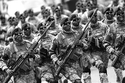 近日,墨西哥在首都墨西哥城的宪法广场举行阅兵式,庆祝独立213周年纪念日。图为士兵在墨西哥首都墨西哥城参加阅兵式。