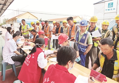 本报讯(记者 马超 通讯员 李方利) 近日,中建二局山东分公司青岛共富产业园项目工会的农民工素质和技能服务提升站联合青岛市即墨区人民医院等开展健康义诊活动,为广大职工的身体健康保驾护航。