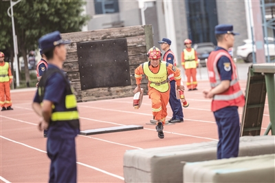 9月19日,由北京市消防救援总队联合市应急管理局、市人社局、市总工会、团市委、森林消防局机动支队共同举办的北京市消防行业职业技能竞赛拉开帷幕。参赛选手时而化身“蜘蛛侠”攀绳而上,时而扛起30斤重的切割机切割灯泡上钢丝并保证灯泡不破……此次竞赛将消防行业的国家队、专职队、企业队、社会救援力量和消防从业人员纳入参赛范畴,全面检验消防行业各岗位的专业技战术水平。