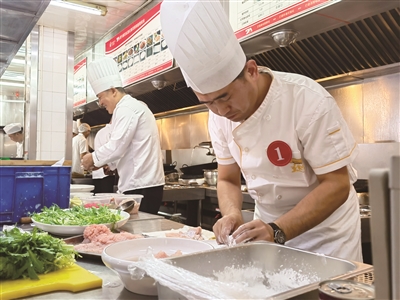 “进入决赛的70余名选手均是由各镇街及相关餐饮企业经初赛选拔而来。”工作人员介绍,赛前,主办方根据职工需求和大赛推进情况,特别邀请了相关从业专家对参赛选手进行了理论知识培训,并传授烹饪技术。决赛现场,中餐热菜、中式面点及冷菜拼盘三类比拼同时进行,竞赛项目既有规定内容又有自选科目,在充分考核选手烹饪技术的同时,给予选手更多发挥特长的空间,展示自身绝活。