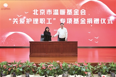 据了解,该专项基金是由北京市政法卫生文化工会、北京市护工服务行业工会联合会、北京天晟昱人力资源有限公司和护理学界知名专家共同发起,主要用于关心关爱本市从事护理工作的职工群体,助力护理职工的技能提升、先进表彰,为护理职工提供技术发展和学术交流的机会,以及帮扶救助困难护理职工和提升护理职工生活品质的慰问,支持护理职工参与社会志愿服务等。“关爱护理职工”专项基金的启动资金100万元。