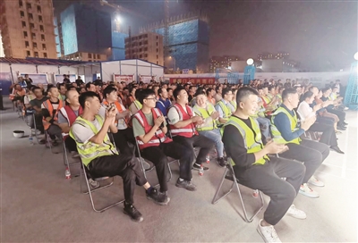9月27日,在大兴西片区项目“情系产业工人”专场慰问演出现场,台下坐满了一线产业工人。歌曲《红歌联唱》振奋人心、催人奋进,展现了中国人民不屈不挠、艰苦卓绝、英勇奋战的英雄气概。精彩绝伦的魔术、动人心弦的杂技、精心编排的相声轮番登场,吸引着现场观众们的专注目光。职工们还不忘拿出手机记录下节目片段。鼓掌声,叫好声,拉满节日氛围。拿着手机全程录像的高苗壮,今年第一年来北京务工,他告诉记者:“把节目全拍下来,休息的时候可以重复看,我还没现场看过这么精彩的演出呢!”高苗壮还说,他已经把精彩的小视频发给父母了,让他们也看看。“在北京,没想到过节还有工会送演出,真好!”演出在舞蹈《向快乐出发》欢快的节奏中圆满落下帷幕。该项目执行经理王惠向记者介绍,项目从5月份进场施工,工人的劳动状态绷得特别紧。“工会送演出,他们可兴奋了,我能感觉到他们有多开心,让紧张繁忙的工地上有了欢声笑语。”