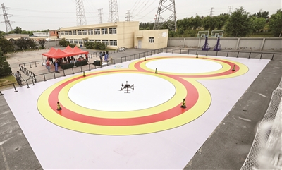 本次比赛设置在国网北京市电力公司检修分公司芦城实训基地,院子里的3架高压铁塔并不是供电设施,而是专门为学员实操训练设置的。“自主巡检”比赛就布置在高压塔下,一架小型无人机正在其中一架高压塔的塔尖上盘旋。这架无人机代替的就是过去背着电工包爬到高压塔上的巡检工,参赛选手操控无人机,按照设计的规划航线便可自主开展精细化巡检。