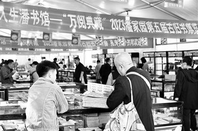 昨天,记者在潘家园旧货市场看到不少市民游客在“潘书馆——‘万阅典藏’2023潘家园第五届古旧书博览会”上翻阅,沉浸于古籍书海中。据悉,本届古旧书博览会以“文山书海 阅享人生”为主题,设古旧图书展区、精品新书展区、“善藏”秋季拍卖会、线上特色活动四大板块。本报记者 曹立栋 摄影报道