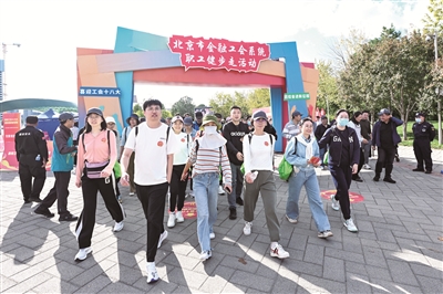 本报讯 (记者 刘欣欣)近日,北京市金融工会在北京市园博园公园组织开展职工健步走活动。来自北京市金融工会系统35家单位的150余名职工结伴而行,感受运动带来的快乐。本次活动由北京市金融工会主办,中国农业银行北京市分行工会承办。