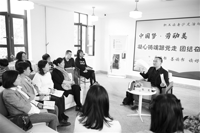 近日,以“中国梦·劳动美 凝心铸魂跟党走 团结奋斗新征程”为主题的职工读者沙龙系列活动,在全国工会品牌职工书屋示范点天津市职工图书馆继续举行。 (10月29日 《天津工人报》)