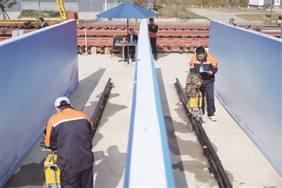 比赛中,来自京津冀三地的无损检测员展现着高超的技能。通过比拼,他们也畅谈了各自的收获,大家纷纷表示,通过与高水平同行的竞技,自己的技艺得到了提升。“通过比赛,我也见到了轨道很多类型损伤,虽然工作中还没遇到,但也是个经验积累的过程,对我的技术水平和对各种伤损的认知有很大的提升。”刘正阳说。