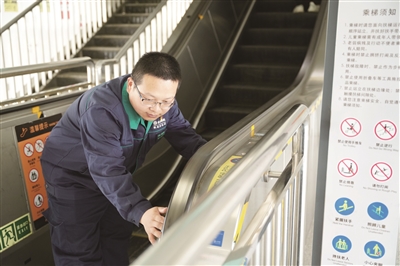 不满足于只擅长直梯维保技术,隗合远下定决心成为全专业能手。他先从专业接近的扶梯设备“下手”,每当有厂家人员来维保电梯时,他就在旁边“偷师学艺”,观察专业师傅如何操作,抓细节、记重点,自己慢慢捋顺了扶梯维保的门道。他还经常利用休息时间在宋家庄培训基地真拆真干,逐渐达到了在运营线上处理扶梯故障的水平。