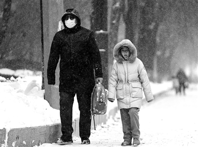 继11月6日遭遇暴雪天气之后,11月8日,黑龙江哈尔滨又迎来降雪天气。图为一名小女孩伸出舌头舔雪。 新华社发