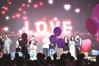 红色的气球、粉色的鲜花、动感的音乐……打扮靓丽、帅气的单身职工陆续来到活动现场。14时,活动正式拉开帷幕。来自传媒行业的小谭和他的组员第一个走上台进行表演,这位1997年出生的小伙子台风稳健、演唱动情,他和组员带来的歌曲串烧赢得了台下观众的阵阵掌声。乐器演奏、诗歌朗诵、街舞表演……一组组精彩演出,展示着单身职工们的风采。活动现场高潮迭起、气氛热烈。
