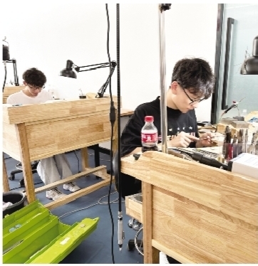 “要想站上全国赛珠宝加工项目世赛组的竞赛场,没有捷径可走,唯有努力。”张宇鹏说,那段时间,为了备战全国工业设计职业技能大赛,他和同学们几乎每天扎根工坊,工作到晚上一两点是常有的事,有时可能就地在工坊过夜了。