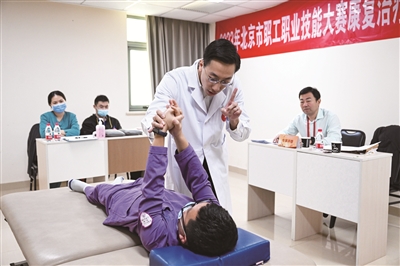 选手赵维纳是北京和睦家京北妇儿医院的康复治疗师,她说:“决赛第一站的考题难度大。我平时主要是做运动康复治疗,对脊髓损伤的功能评估接触较少。通过参赛,我发现了自身不足,今后将进一步提升技能。”来自北京协和医院康复医学科的选手陈铮威表示,大赛强调规范化操作,有助于选手更好地夯实基础。备赛期间,他将曾学习过的相关基本知识重新温习,起到了查缺补漏的作用。