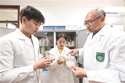初冬的京城,树叶被凛冽的北风吹落一地,时而随风起舞,尽显冬日的浪漫。在北京市农林科学院(以下简称“市农科院”)的食用菌温室里,不同品类的蘑菇竞向绽放。蘑菇的旁边还有各种花草树木,葱葱郁郁,俨然是一个生机盎然的花园。几位学生围着老师蹲在一堆蘑菇前,老师手里拿了一个长满蘑菇的菌棒,耐心地给学生介绍蘑菇上生成黄斑的原因以及防治方法。这位正在讲课的老师,就是市农科院植物保护研究所食用菌研究室主任刘宇,曾荣获“全国优秀科技特派员”“全国小蘑菇新农村建设突出贡献者”“全国科技助力精准扶贫先进个人”等荣誉称号,是享受国务院政府特殊津贴专家。