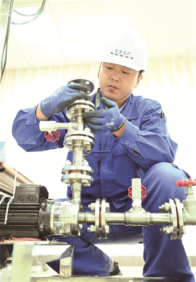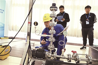 这是2023年北京市职工职业技能大赛污水处理工竞赛决赛现场,选手们紧张地埋首面前的实操作业项目,不敢有一丝懈怠。这个考核项目叫“泵管阀”,考验的是选手对日常使用设备的安装检测技能水平。“相较于日常生产需要的大型设备,这是对应生产环节缩小比例的微缩设备,日常主要用于教学,也适用于比赛。”此次大赛承办方北京排水集团工会副主席刘旭东说。
