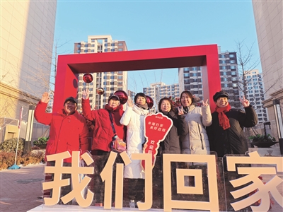 12月25日,丰台区看丹街道榆树庄园小区门口热闹非凡。榆树庄村2470户村民将陆续领到钥匙回迁新家。这是北京市首个交房的全装配式棚改回迁房。