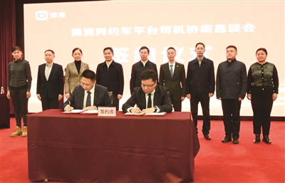 在与会人员的见证下,滴滴网约车平台企业代表和网约车司机代表签署《滴滴网约车平台司机权益保障协议》,协议涵盖协商机构与机制建设、职业伤害与安全保障、收入奖励与补偿垫付、派单机制与平台规则、福利关怀与司机发展、公益与帮扶、专属商业保险试点等具体措施。