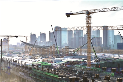 作为城市副中心重点工程,副中心站综合交通枢纽是率先在地下铁路车站正上方进行大规模综合开发的大型综合交通枢纽,也是京投公司高质量开发轨道交通沿线土地资源的样板工程。目前该项目主体工程建设正在全面有序推进。截至12月底,主体工程土方完成至90%,结构完成至85%。副中心站综合交通枢纽的屋盖造型采用运河文化元素,仿若连绵灵动的“京帆”,寄托扬帆远航的美好寓意。不久后,将有10面“京帆”在此升起,传承运河“千帆竞连”历史记忆。