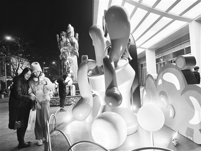 新年临近,京城大街小巷和各商业街被装饰得格外红火喜庆。人们漫步在灯火阑珊的街头巷尾,随手拍照留影,提前感受新年的氛围。本报记者 孙妍 摄影报道
