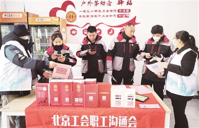 “你加入工会了吗?可以通过‘北京工会i会员’微信小程序扫码入会,北京银行全程参加沟通会,现场办理工会会员服务卡,既简单又便捷。最主要的是,加入工会组织可以享受多项服务,无论是维权、就业、帮扶,有什么问题和困难都可以找工会,早入会早受益。”两个美团送餐员在接单间隙,聊起了加入工会那些暖心事。