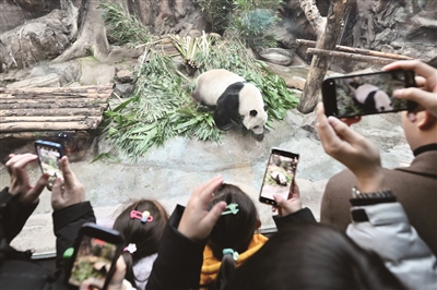 在北京动物园的大熊猫馆,上午10点半“萌兰”运动场排队口已经排起了长队。“师傅,大概这个队伍还要排多久呀?”一名游客问向旁边维护秩序的工作人员。“大概还需要等50分钟。”工作人员回答道。作为熊猫界的大明星,萌兰的高人气吸引不少市民家长带着孩子趁着元旦假期来北京动物园一睹其风采。据北京市公园管理中心发布的消息,元旦假期三天,市属11家公园及中国园林博物馆共接待游客97.51万人次,同比增加91.99%,较2019年增加52.17%。颐和园、天坛公园、北京动物园游客接待量位列前三位。