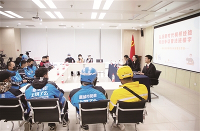 外卖小哥介绍了各自情况,述说了时代风帆楼宇党委联合工会三年来暖心服务的点点滴滴,并围绕“小哥驿站”在实际使用中存在的问题、怎样更好地关心关爱新就业形态劳动者等方面展开了讨论。