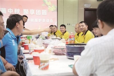 2023年中秋节来临之际,时代风帆楼宇党委联合工会以“情满中秋,聚享团圆”为主题,邀请10名来自美团、饿了么平台的外卖小哥,来到楼宇党群服务中心开展庆中秋围炉茶话会,大家边吃火锅、边拉家常。