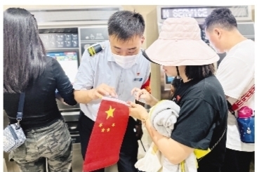 如今,韩麟成为了7号线湾子站务管理中心的“活跃分子”,不仅在工作中勇挑重担,每逢重大节日保障期间,还不忘发挥党员先锋模范作用,与党员先锋岗的同事们一起冲锋在前,尽心尽力服务好每一名乘客。