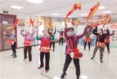 近日,石景山区苹果园街道边府社区组织辖区居民开展腰鼓舞健身活动。活动现场,在社区舞蹈队的带领下,社区居民腰挎腰鼓,手执鼓槌,边敲边舞。经过多次的演练,居民的动作逐渐熟练,活动现场充满欢声笑语。此次活动拓展了居民的健身方式,营造了全民健身的良好氛围。