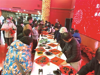 近日,东城区总工会在区工人文化宫举办迎新春电影演出慰问活动。活动现场,东城区总工会邀请10位书法家及7位职工书法兴趣班学员挥毫泼墨,一副副充满祝福的春联和“福”字跃然纸上,并送给现场职工,让职工们切实感受到工会组织的关爱和祝福。