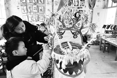 新春佳节临近,浙江省建德市航头中心幼儿园开展“寻年味 忆童趣”主题活动,让孩子们了解家乡“板凳龙”文化,体验手工技艺,感受传统民俗文化的魅力。图为浙江省建德市航头中心幼儿园的孩子在老师指导下为“板凳龙”添色。