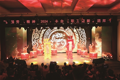 伴随着开场舞《让爱放飞》热情洋溢的迎新氛围和动感节拍,由丰台区总工会主办、全总文工团支持的“弘扬劳动精神”2024年丰台区职工迎新春团拜会拉开帷幕。舞台上,广大职工通过丰富的表演形式,述说丰台区广大劳动者的敬业与坚守,歌颂丰台高质量发展的新风新貌,展现新时代劳动者奋进之姿、创造之美、实干之情。