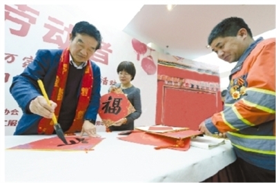 “工会这次组织知名书法家为我们职工写‘福’字和春联特别有意义,这份‘年货’很实用,充满着心意。”2月1日,致敬首都劳动者——“万福迎春”2024年送万福进万家书法公益活动暨“最美劳动者 微笑带回家”活动在北京市总工会职工服务中心举行。