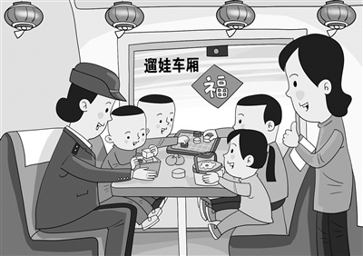 “白萝卜蹲,白萝卜蹲,白萝卜蹲完胡萝卜蹲!”“哈哈哈哈……”1月29日下午,在厦门开往上海的G1654次高铁列车上,一群小旅客在乘务员的带领下玩着趣味小游戏,整节车厢都沉浸在孩子们的欢声笑语中。原来,这趟列车的餐车部分区域被临时改造成了“遛娃舱”,上车的小旅客可以在家长的陪同下参与趣味游戏、借用儿童玩具或阅览故事书籍。(1月31日 新华社)□朱慧卿