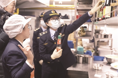 连日来,市市场监管部门开展春节食品安全专项检查,特别是加大了对年夜饭供餐单位、大型超市及市场等食品经营单位的监督检查力度。在眉州东坡西大望路店,朝阳区市场监管局执法人员重点核查了食品采购来源、进销货流程、食品储存条件以及后厨加工操作等多个环节。节日期间,市场监管部门将保持充足执法力量,随时处理市民诉求,保障广大市民享受一个欢乐安心的春节。本报记者 周美玉 摄影报道
