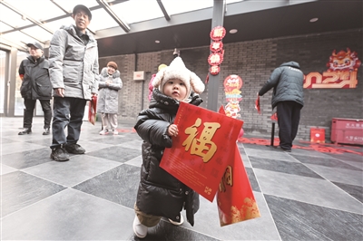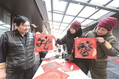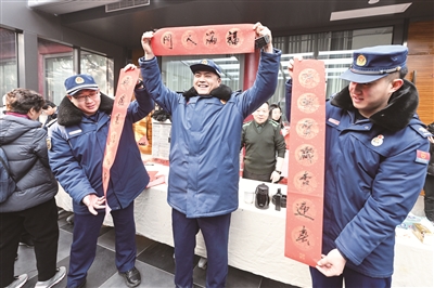 浓浓墨香里,职工书法家们用篆书、行书、楷书等多种书体书写的“福”字跃然纸上,字里行间尽显浓浓年味。短短的两小时中,职工书法家们书写了数百副春联和“福”字,前来观摩和领取春联、“福”字的职工和游客络绎不绝。大家精心挑选着自己心仪的春联和“福”字,互相分享着祝福。