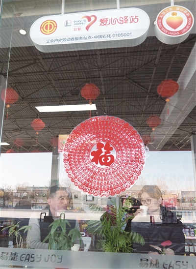 “这个‘司机之家’也是户外劳动者暖心驿站,我们全年无休,24小时不打烊。目前配备了电视、微波炉、餐桌、饮水机、充电设备等,同时还配备有工会的相关介绍及货车司机入会资料。”站长孙秀娟介绍,为了方便司机们换洗衣服,“司机之家”还为他们添置了洗烘一体机,这也是最受他们欢迎的服务项目。休息区里,还有躺椅和图书杂志,户外劳动者小憩的同时,也可以看看书。“我们采取‘2+7+X’项服务功能,在加油和购物基本服务功能的基础上,提供停车、休息、餐饮、加水、淋浴、洗衣、干衣7项核心服务功能和道路救援等X项辅助服务。春节里大货司机们为了保供格外辛苦,我们又添加了送饭服务,可以在站里吃,也可以打包带走。”