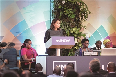 据了解,在为期5天的大会议程中,包括各国部长级官员、商界领袖、科学家和环保活动人士在内的参会者将审议多项决议和决定,讨论应对环境危机和由危机所引发的贫困与社会贫富差距扩大等具体社会问题。图为第六届联合国环境大会主席莱拉·贝纳利在第六届联合国环境大会开幕式上致辞。