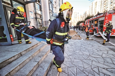近日,为提升高层住宅建筑灭火救援实战能力,大兴区消防救援支队开展高层住宅建筑火灾灭火救援综合实战演练,以增强辖区群众安全意识和自防自救能力。本报记者 周美玉 摄影报道