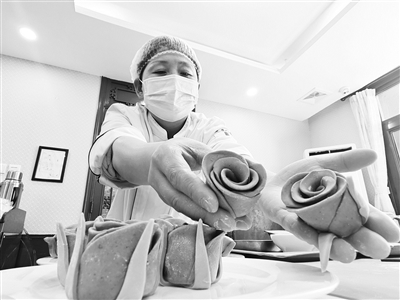 为迎接“三八”国际妇女节,峨嵋酒家地安门店的巧手面点师制作了300朵玫瑰花卷,这是店里为客人准备的妇女节礼物。此外,砂锅居推出玫瑰豆沙春卷,护国寺小吃总店专门设计了椰奶豆腐、黑芝麻炸糕两款节日限定小吃,大地西餐厅定制专属咖啡……老字号的厨师们在温馨的节日中为妇女们送上别样祝福。