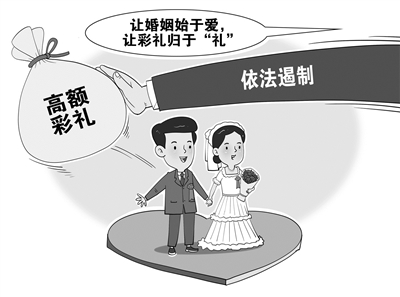 全国两会上,高额彩礼现象再次成为热点话题。8日提请审议的最高法工作报告提出,依法遏制高额彩礼,让婚姻始于爱,让彩礼归于“礼”。彩礼多寡,看似小事家事,却是影响社会风气的大事。(3月9日 新华社)□朱慧卿
