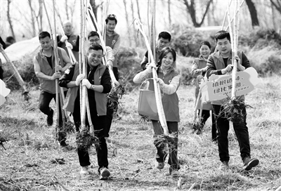 植树节即将来临,各地开展植树活动,为大自然增添新绿。图为山东省临沂市郯城县公益救援组织志愿者在马头镇白马河畔参加义务植树活动。 新华社发