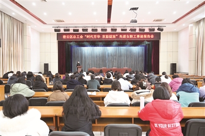 据了解,为大力弘扬劳模精神、劳动精神、工匠精神,激励广大女职工立足岗位、创先争优、建功立业,密云区总工会组织召开此次先进女职工事迹报告会。大会邀请了4位先进女职工代表分享自己的职场故事,通过面对面的交流、心连心的倾听,传递榜样力量,示范引领广大女职工实干笃行、争创一流,做伟大事业的建设者、文明风尚的倡导者、敢于追梦的奋斗者。