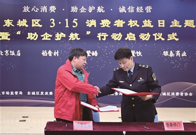 昨天,东城区市场监管局、区发改委、区商务局等联合举办2024年“315消费者权益日”主题大会。会上,东城区市场监管局联合区发改委、区政务服务局举行“助企护航”协议签署仪式,标志着该区“助企护航”行动正式启动。该协议由三部门共同拟订,将进一步携手为企业高质量发展营造良好的营商环境。本报记者 边磊 于佳 摄影报道