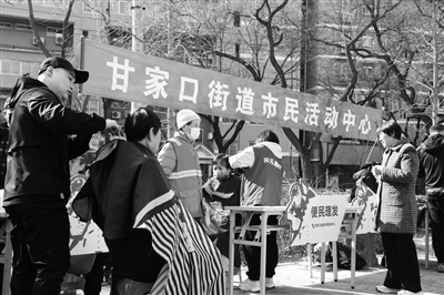 近日,海淀区甘家口街道市民活动中心举办“雷锋月”志愿服务主题活动。活动现场,10余个志愿服务“摊位”亮相,志愿者们化身当代“雷锋”,为居民提供理发、测血压、配镜、政策咨询、居家养老等服务项目。本报记者 周美玉 摄影报道