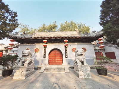 烟袋斜街还有一个重要的文物,那就是广福观。说起这个道观,很多人都很陌生。但是它确实是北京一座重要的道观,位于烟袋斜街37号。明天顺三年(1459年)建,明代管理天下道教的道录司( 明代为掌管道士的最高权力机构,隶属于礼部)曾设于此观。清雍正年间重修,改名孚佑宫。光绪九年(1883年)改建山门,民国后又复称广福观。广福观分东西两院,东院即正院,保存较为完好,有山门、中殿、后殿等建筑尚存,西院却仅余3间正殿,3间东配房。在许多人心中,广福观成了中国道教文化的重要象征。可以说,植根于道教文化的广福观被人们视为后海展示中国传统文化的一个重要符号。
