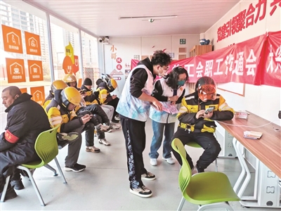 日前,瀛海镇总工会在龙湖天街暖心驿站开展职工沟通会。工作人员向外卖和快递小哥们详细介绍困难帮扶、普惠服务、技能助推等10余项工会品牌服务,指导“小哥”们通过“北京工会i会员”现场入会,同时叮嘱“小哥”们在送餐休息间隙随时可以来到暖心驿站歇脚、喝水、休息、取暖。该镇总工会相关负责人表示,职工沟通会是倾听新就业形态劳动者需求和心声的窗口,希望通过这样面对面的交流,心与心贴近,拉近与新就业形态劳动者的距离,把服务做在平常、落在实处,最大限度促进新就业形态劳动者加入工会,尽早享受到“娘家人”的贴心服务。