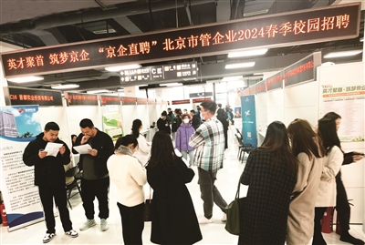 3月19日下午,由市国资委与市教委联合举办的“京企直聘”2024年北京市管企业春季高校毕业生招聘会在北京高校大学生就业创业指导中心举行。北京公交集团、北京市基础设施投资有限公司、北京出版集团等90余家用人单位参会,现场提供300余个招聘岗位。